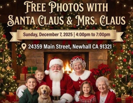 Rock Bottom Media and JMV Productions are offering free family and pet photos with Santa at Locale Studios in Newhall, CA, on Sunday, Dec. 7, from 4-7 p.m. Visitors are encouraged to bring donations of pet toys, treats, or canned food, which will benefit a local animal shelter.