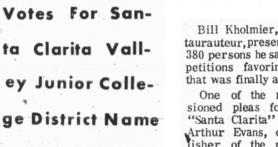 Today In SCV History: December 13, 1967 - Santa Clarita Valley Junior College District Named