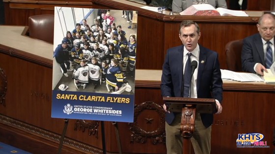 Rep. George Whitesides honored the Santa Clarita Lady Flyers on the House floor after the youth hockey team won their championship just weeks after a crash involving a snowplow injured five players and killed a player’s father, Manny Lorenzana. Praising their resilience, Whitesides recognized the team’s decision to compete in his memory and celebrated their 1-0 overtime victory as a testament to their strength and unity.