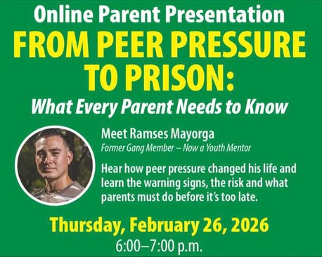 **Feb. 26 Virtual Parenting for Prevention Event Features Former Gang Member Speaking on Youth Peer Pressure**