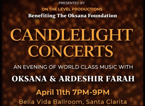 The Oksana Foundation will host “Strings of Light: A Candlelight Benefit Concert” on April 11 at the Bella Vida Ballroom in Santa Clarita, featuring pianist Oksana Kolesnikova and Grammy-nominated guitarist Ardeshir Farah. The fundraiser will support local youth and senior programs through music and arts education, and will include the unveiling of a rare marble-crafted archtop guitar. Tickets range from $125 to $200.