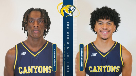 Three College of the Canyons men’s basketball players earned All-Western State Conference, South Division honors for the 2025-26 season, highlighted by First-Team selections for sophomore Donovan Cornelius and freshman Dwayne Boston Jr., while freshman Craig Irons received Honorable Mention recognition. Boston led the team in scoring and minutes, Cornelius earned his second straight First-Team nod, and Irons anchored the Cougars on the boards and in blocks. COC finished 16-12 overall and advanced to the 3C2A Southern California Regional Playoffs for the first time since 2017-18.