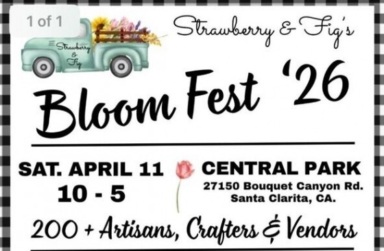 Strawberry & Fig’s annual “Bloom Fest 2026” will take place April 11 from 10 a.m. to 5 p.m. at Central Park in Santa Clarita, featuring more than 200 vendors, live entertainment and a wide variety of food and drinks. The free, family-friendly event invites attendees to shop handmade goods, enjoy food trucks and cocktails, and take part in a lively community celebration. More details are available at bloomfestscv.com.