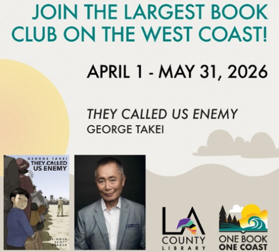 The Los Angeles County Library is joining 194 library systems across three states for the “One Book, One Coast” program, featuring George Takei’s graphic memoir *They Called Us Enemy*. Physical and unlimited digital copies will be available through early June, with local discussions, activities, and a culminating author talk livestreamed from the East L.A. Library. Stevenson Ranch and Castaic branches are among the participating locations.