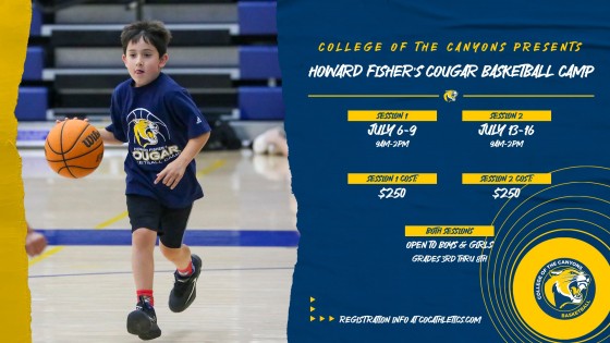 Registration is now open for the 2026 Howard Fisher Cougar Basketball Camp at College of the Canyons, offering two July sessions for boys and girls entering grades 3 through 8. The camp, held in the West P.E. gym on the Valencia campus, focuses on skill development, competition and mentorship, with a $250 registration fee and an early bird discount available through April 19. Proceeds will benefit the COC men’s basketball program.