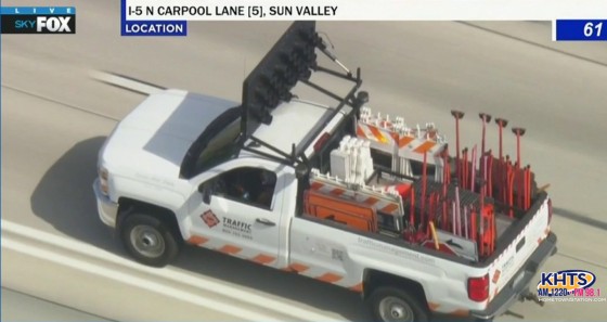 Police Pursue Stolen Traffic Truck from Hollywood Through Santa Clarita Toward Antelope Valley