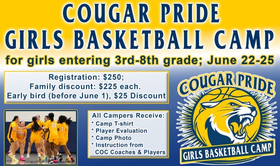 June 22-25: Inaugural Cougar Pride Girls Basketball Camp, Registration Open